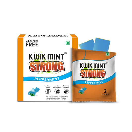 Stay fresh and confident anytime with Kwik Mint sugar-free mouth freshener mint strips, the modern and hygienic way to combat bad breath instantly, known as one of India's best mouth fresheners. Kwik Mint melts in seconds to provide instant coolness and long-lasting freshness. Each of the strips is sugar-free, alcohol-free, and safe for diabetics, perfect after meals, coffee, or smoking. Choose from refreshing Peppermint and Spearmint flavours, perfect mint strips for bad breath and on-the-go freshness. Explore our complete Kwik Mint range below and enjoy instant freshness that fits right in your pocket.