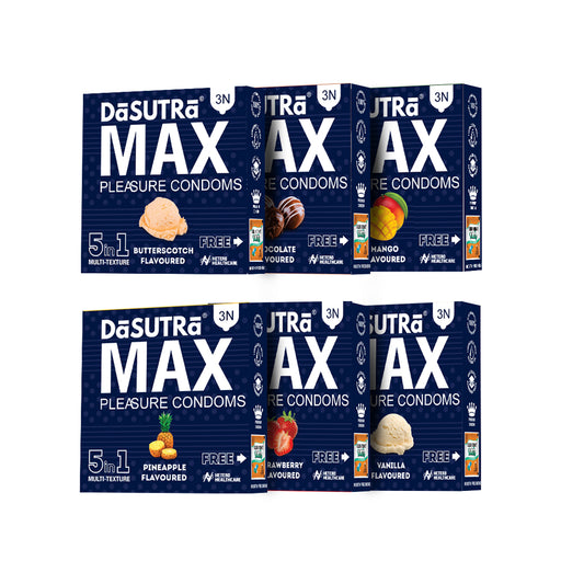Original price Rs. 200.00 - Original price Rs. 600.00Original price Rs. 200.00 - Original price Rs. 600.00Original price Rs. 200.00Rs. 200.00 - Rs. 540.00Rs. 200.00 - Rs. 540.00Current price Rs. 200.00| /DaSutra MAX - Intensify Every Moment with Multi-Textured Pleasure DaSutra MAX Pleasure Condoms are designed to elevate intimacy with a unique 5-in...